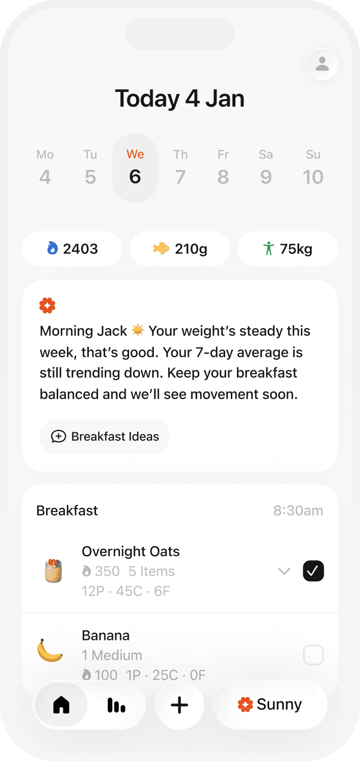 It’s normal to doubt yourself, a bad day or a jump on the scale. Sunny helps you see the bigger picture, reminding you what really matters so you don’t lose momentum when life gets messy.